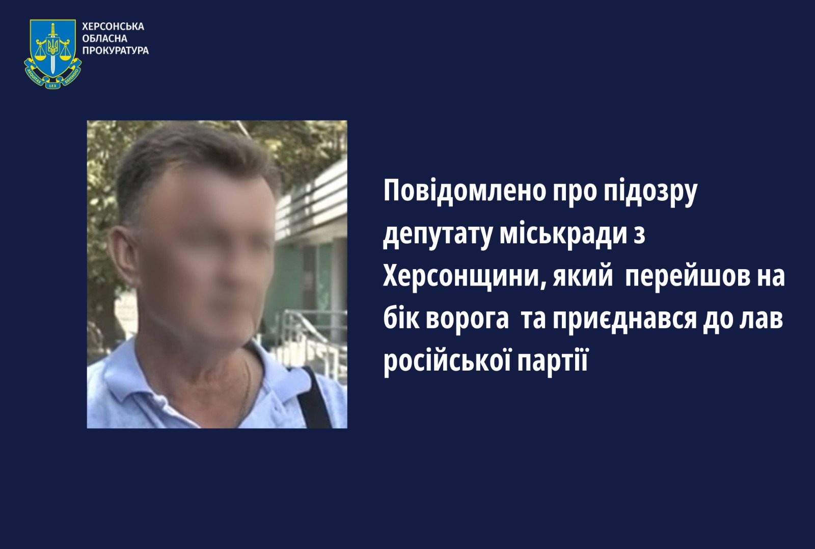 За процесуального керівництва Херсонської обласної прокуратури депутату Генічеської міськради від забороненої політичної партії «опзж» заочно повідомлено про підозру у колабораціонізмі та службовій недбалості.